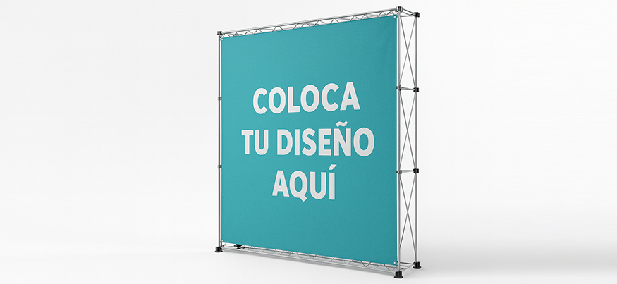 Disponible en dos tamaños, con lona fijada mediante velcro para un montaje rápido y fácil sustitución del diseño. Ideal para eventos, ferias y sesiones fotográficas.